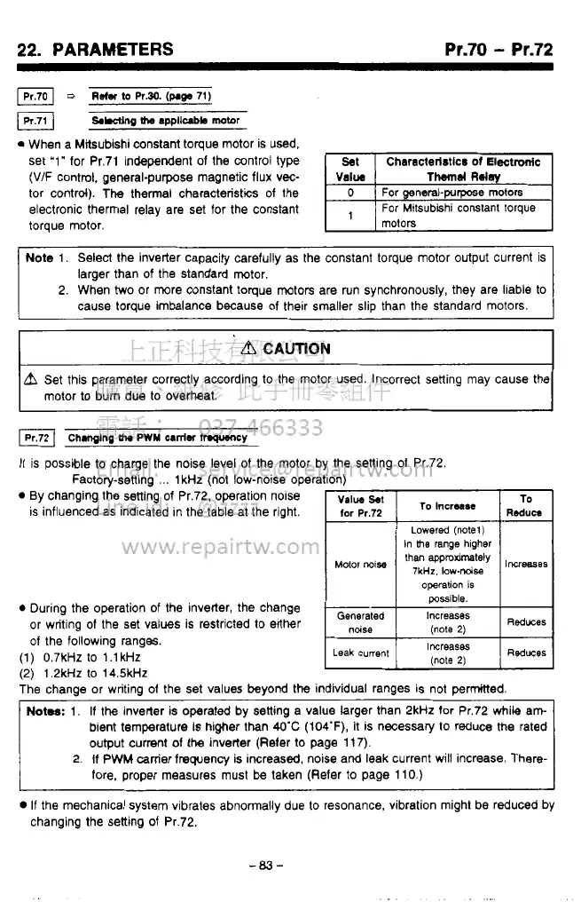 Pr.72, operation nolse
