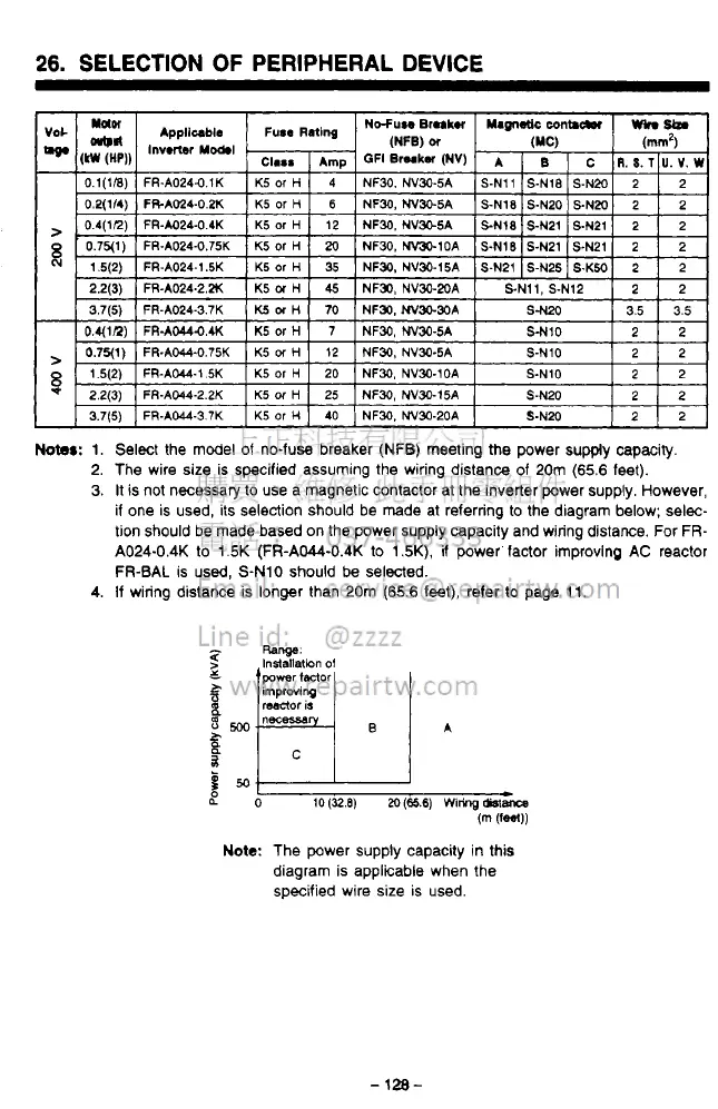 1. Select the model of no-fuse breaker (NFB) meeting the power supply capacity.