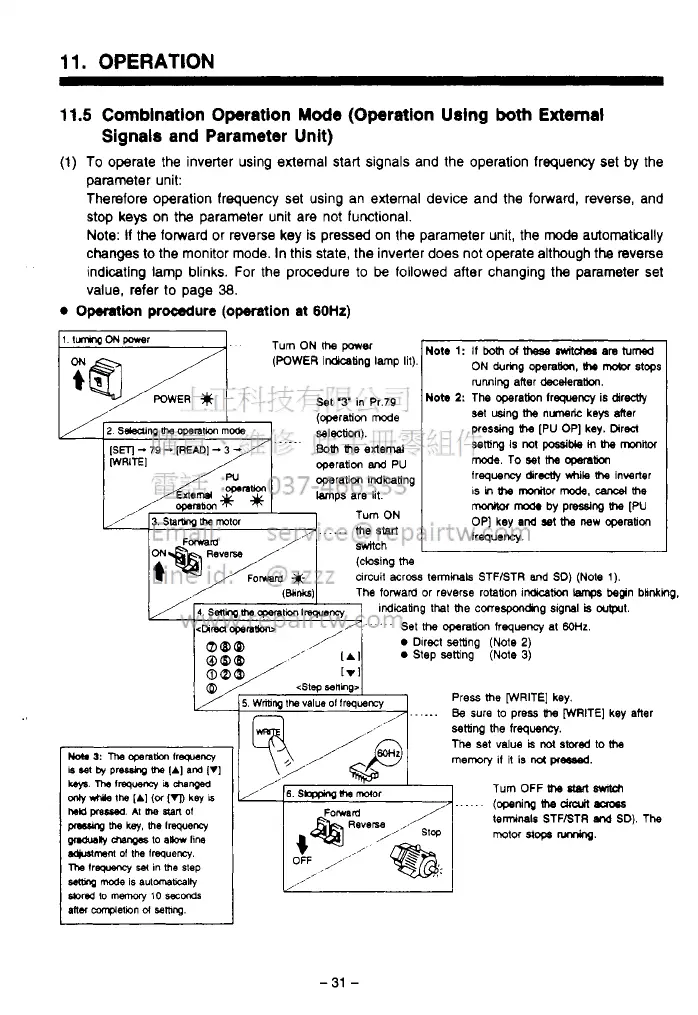 Therefore operation frequency set using an external device and the forward, reverse, and