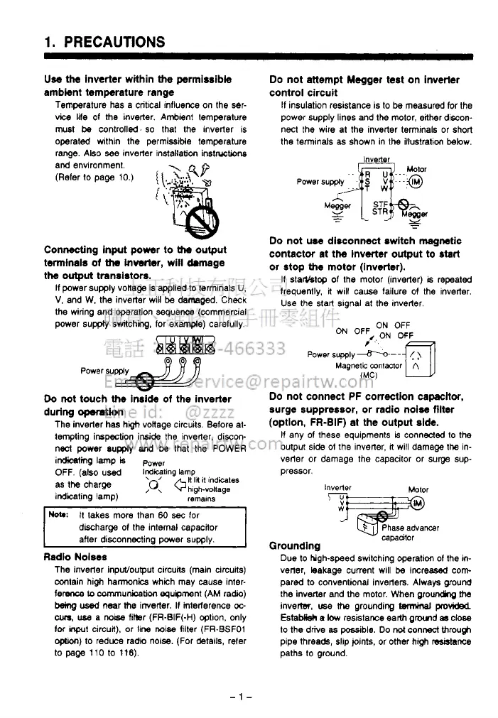 inverter. Ambient tempereture power supply lines and the motor, either discon-