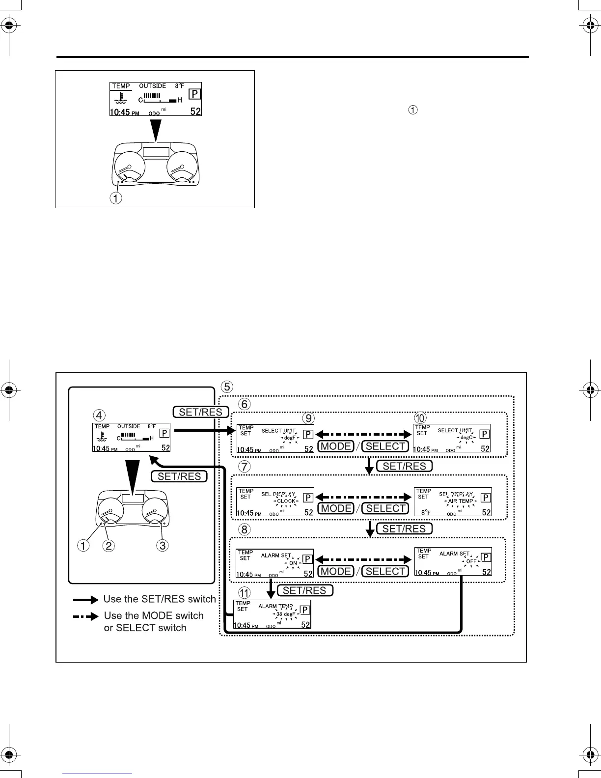 pressing the MODE switch , the outside air tem-