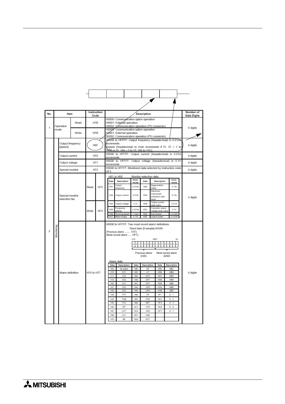 The following example reads the Output Frequency from Inverter station #1 and stores this