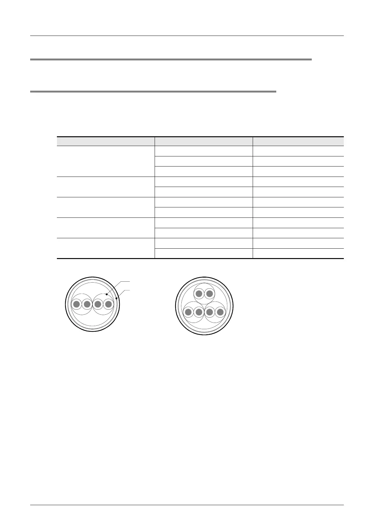 The table below shows recommended model names and manufacturers of cables used for wiring.