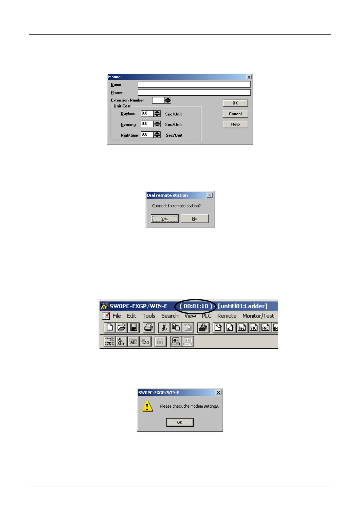When the line cannot be connected, the message box "Executing!" is closed, and the following dialog box