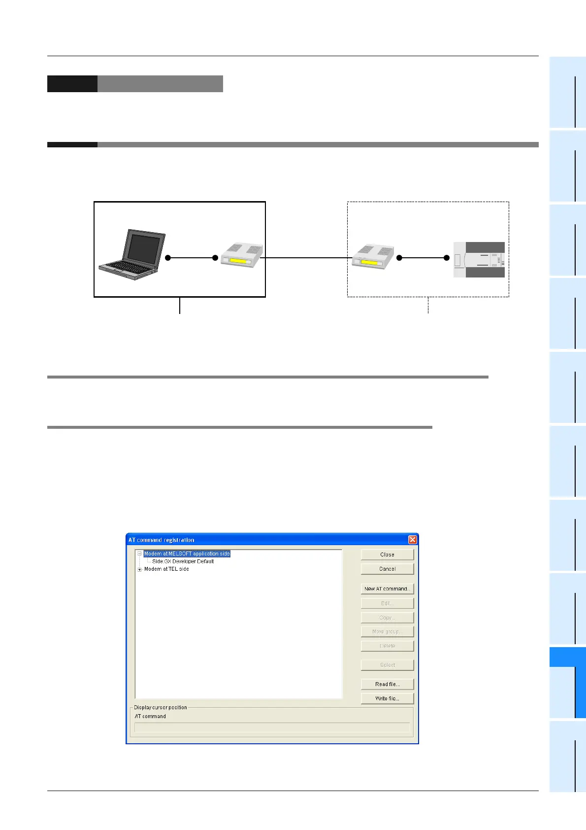 This subsection explains how to register the AT command for initializing a modem connected to the personal