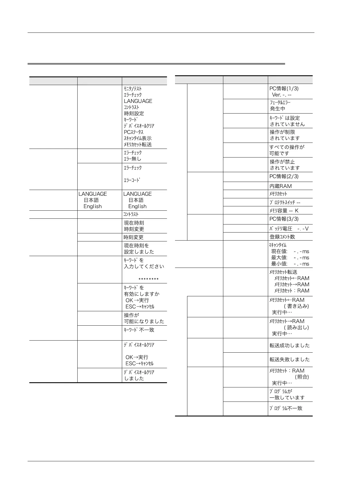 19.25 Menu Display Characters - Japanese & English Display Character Correspondence Table
