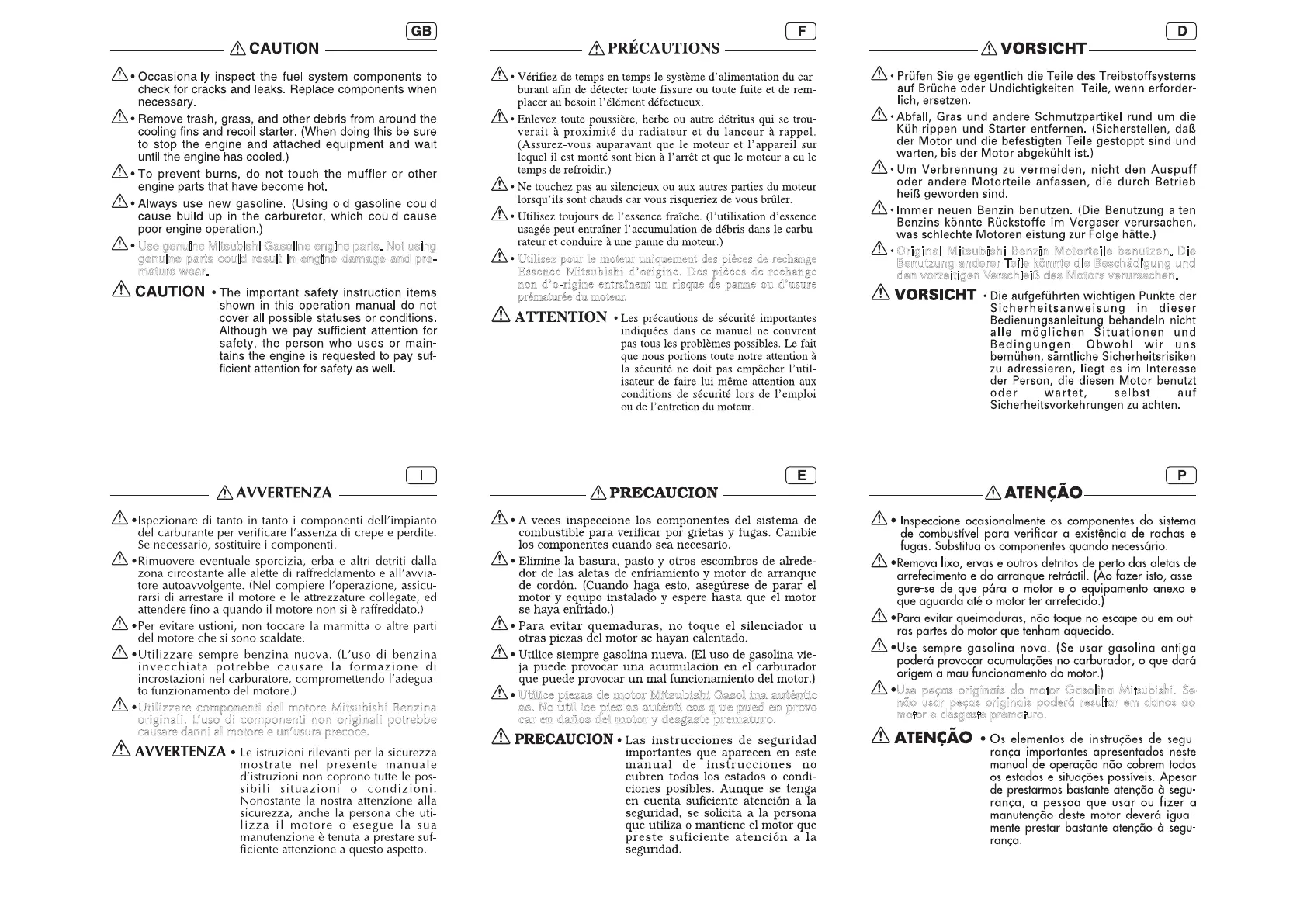 Use peças originais do motor Gasolina Mitsubishi. Se
