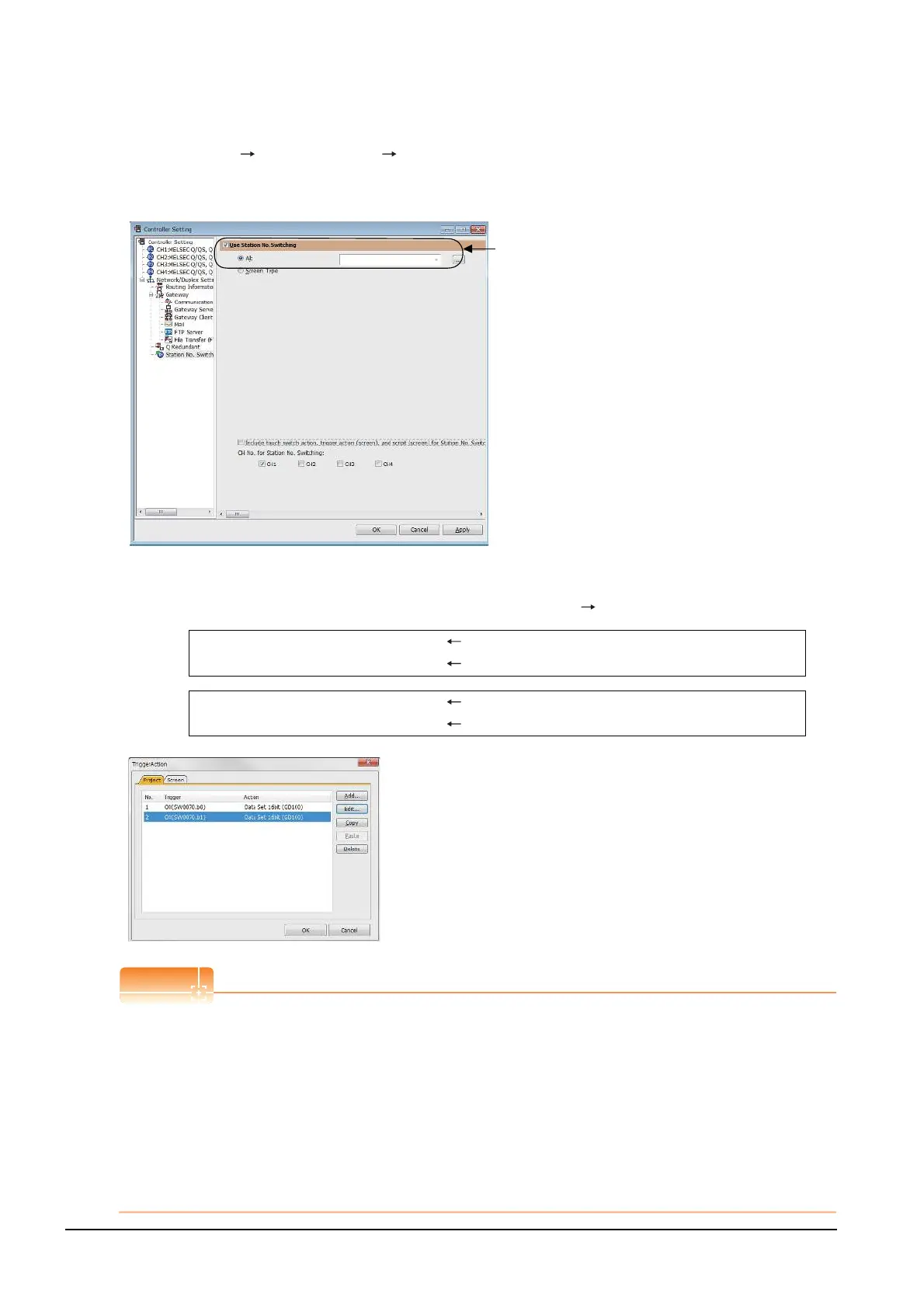 To use the trigger action function, set the N/W No. and the station No. of the PLC CPU in [Unsigned BIN].