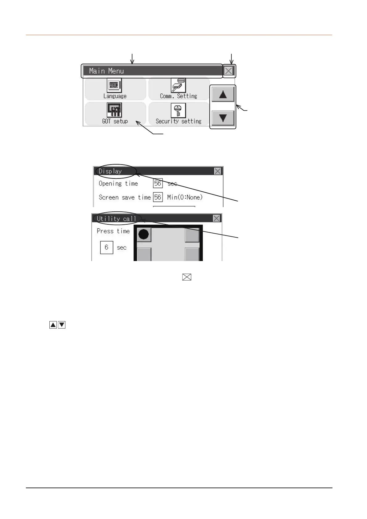 If this button is touched when directly displayed from monitor screen, the screen is closed and returns to monitor