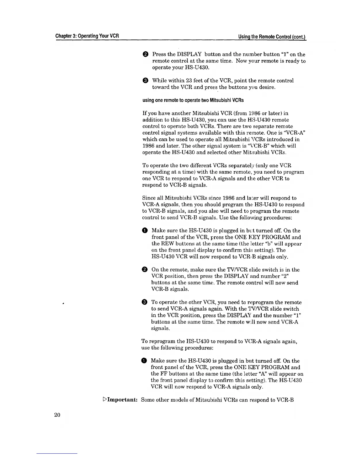 operate the HS-U430 and selected other Mit:_ubishi VCRs.