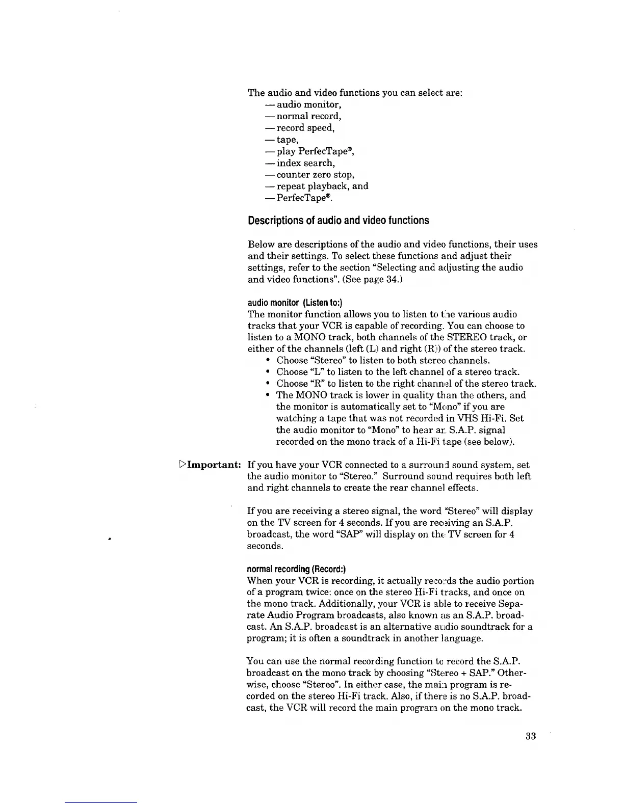 the mono track. Additionally, your VCR is able to receive Sepa-