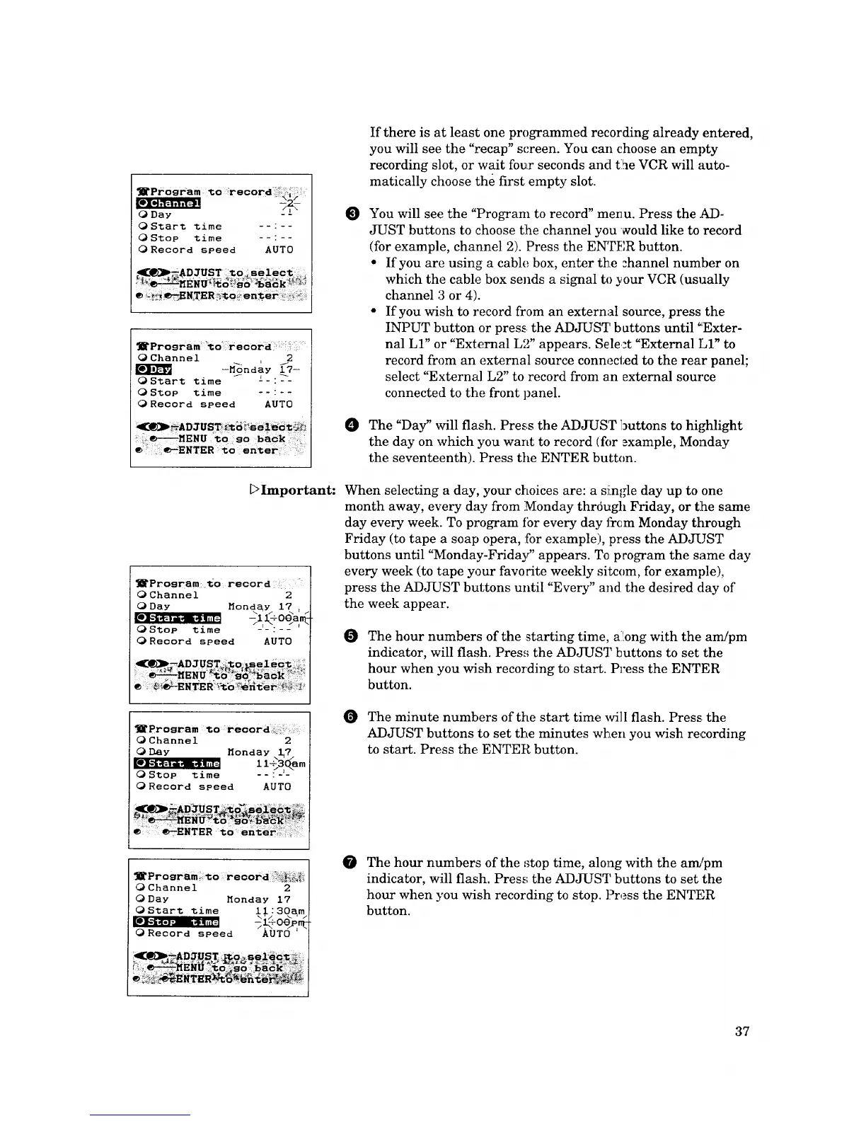Friday (to tape a soap opera, :for example), press the ADJ-UST