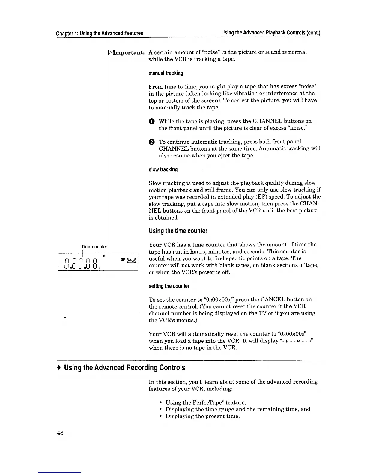 Your VCR will automatically reset the counLer to "0H00M00S"