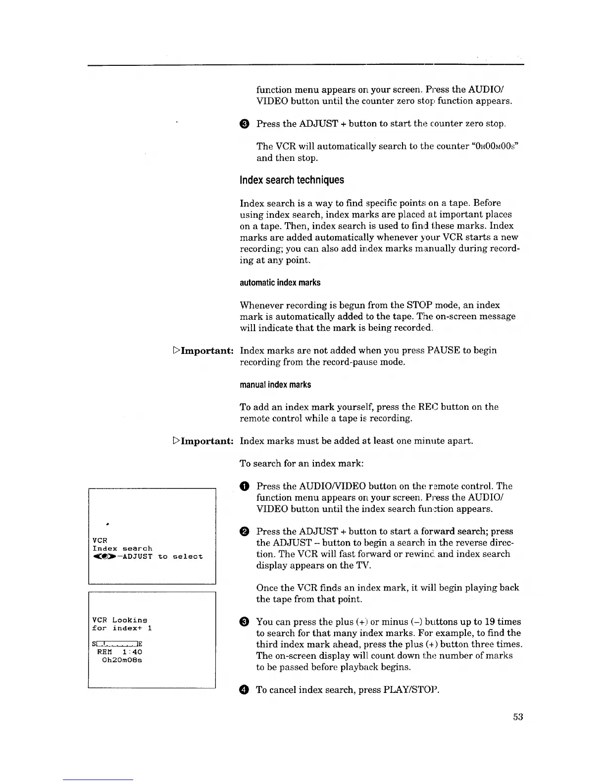 Once the VCR finds an index mark, it will begin playhag back