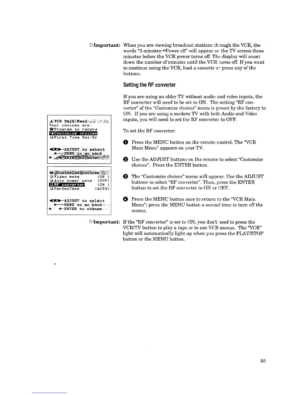 buttons to select "RF converter". Then, press the ENTER