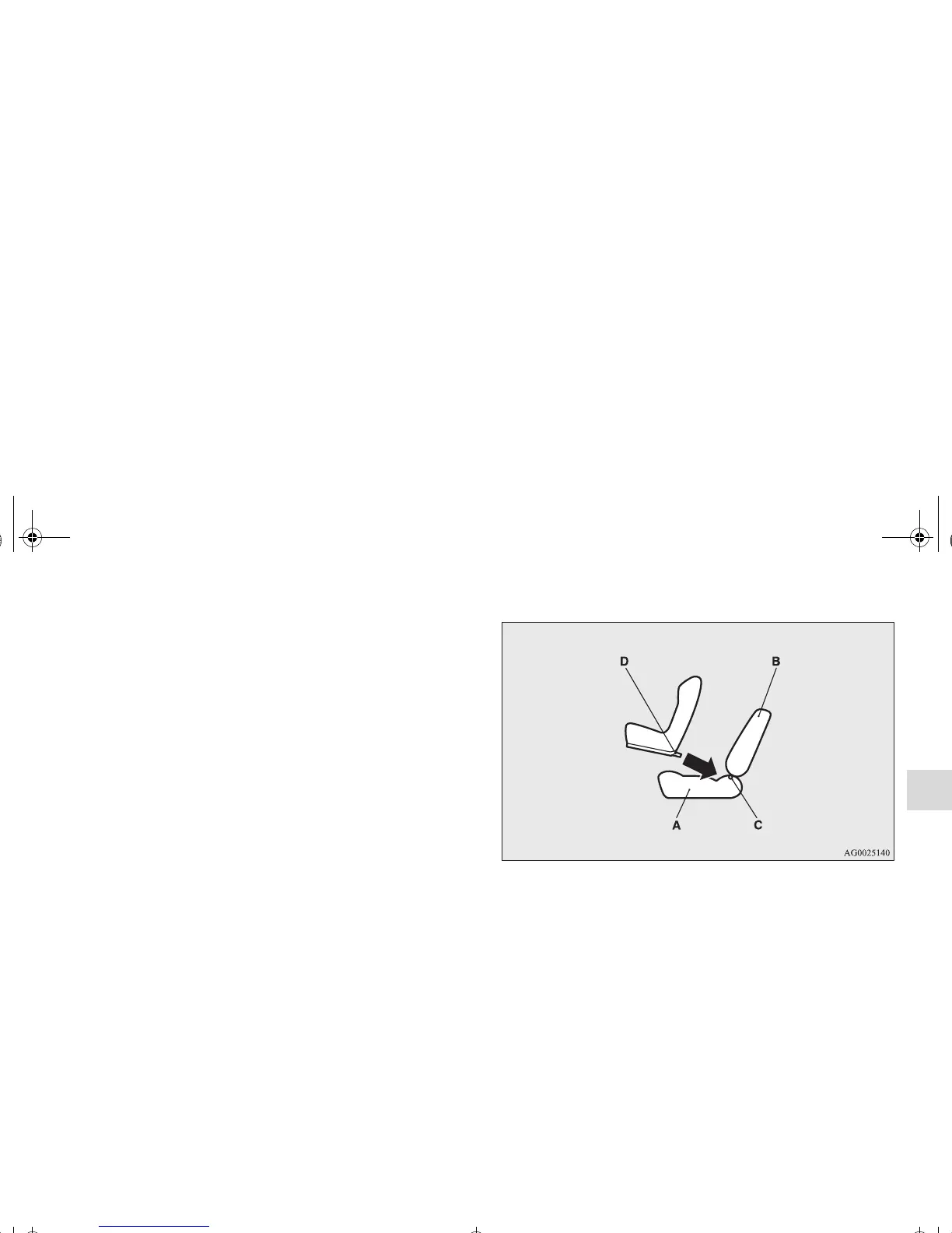 2. Open the gap a little between the seat cushion (A) and the