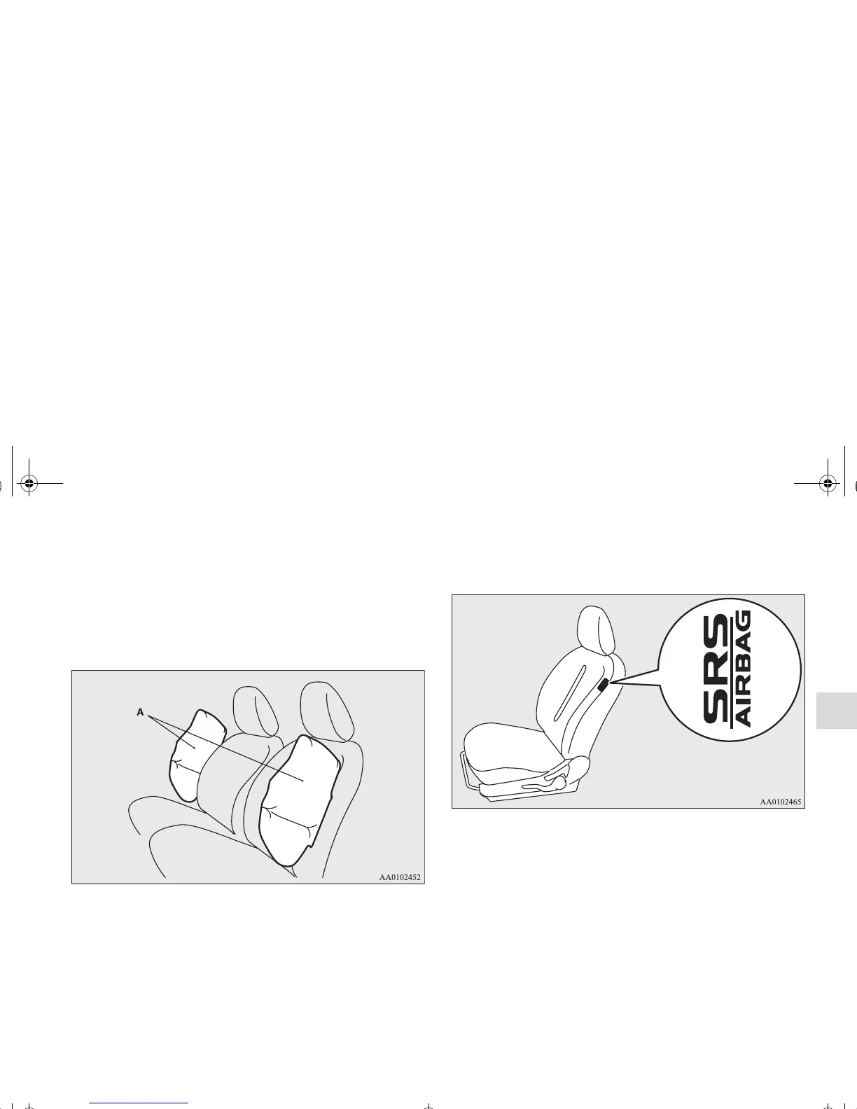 The side airbags (A) are contained in the driver and front pas-