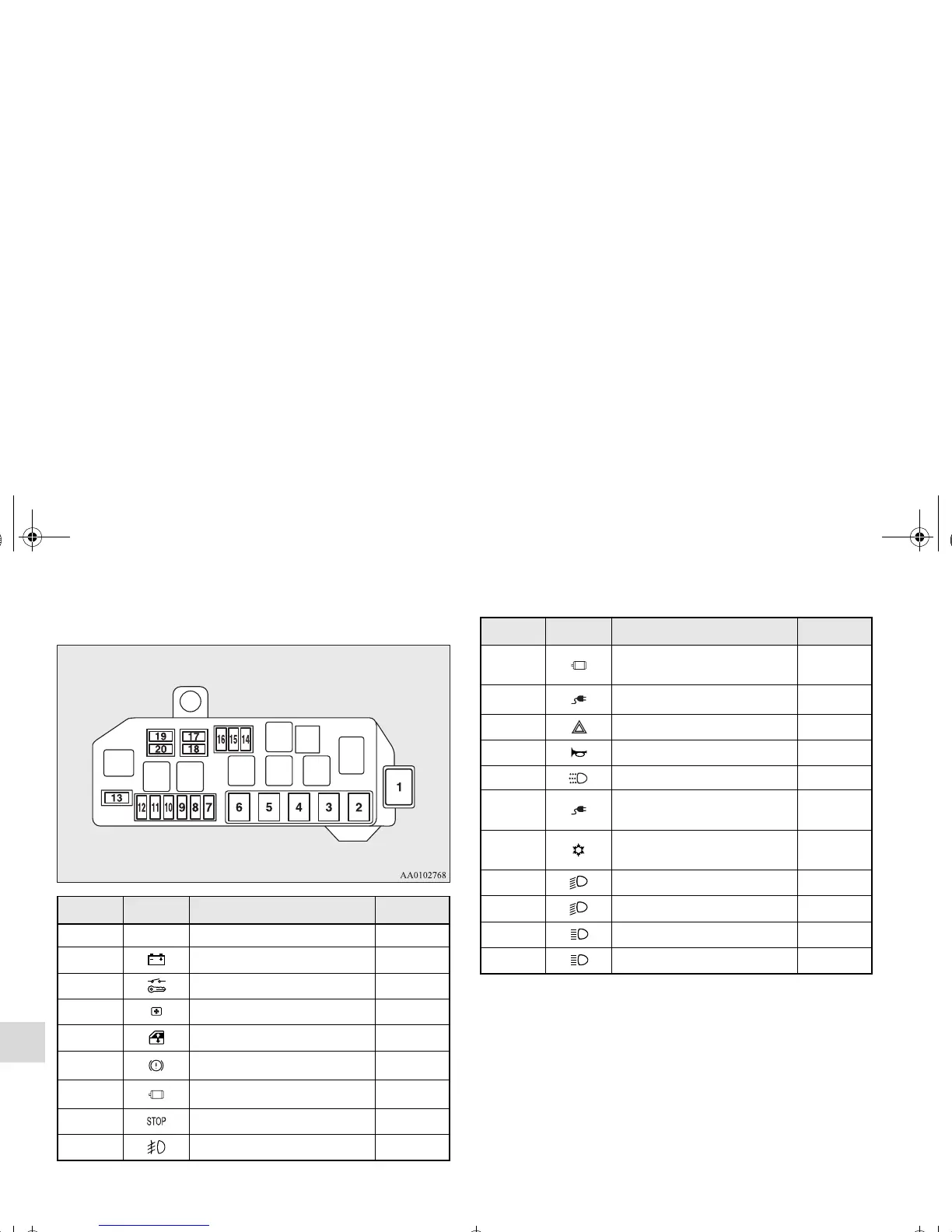 20 Headlight (high beam) (left) 10 A