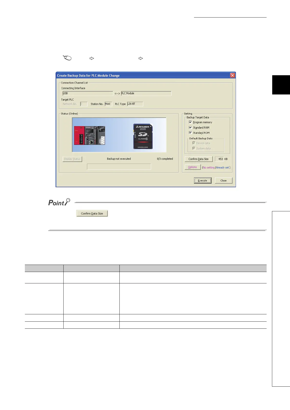 Open the "Create Backup Data for PLC Module Change" dialog box.