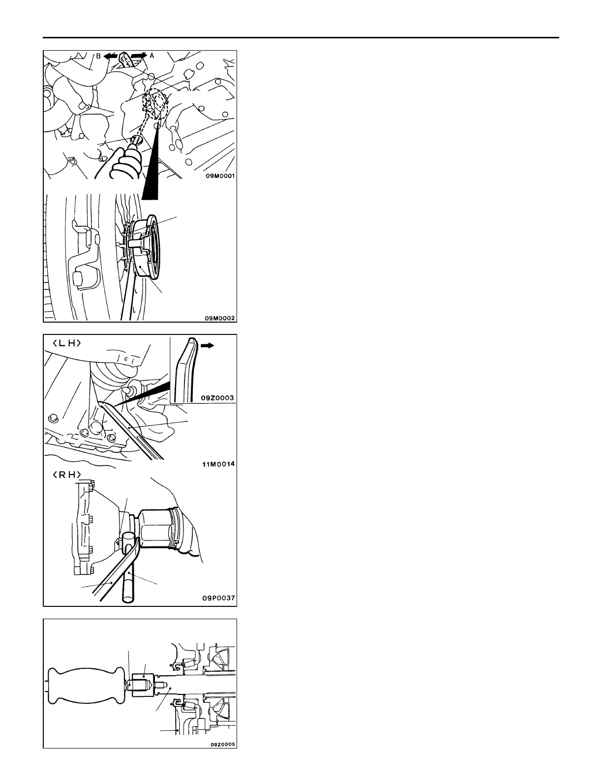 (1) To disconnect the left-hand drive shaft, insert a lever