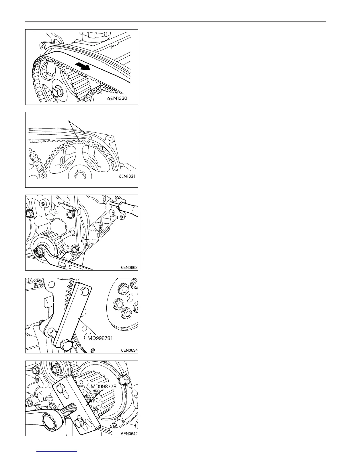 (1) If the timing belt is to be reused, chalk an arrow mark