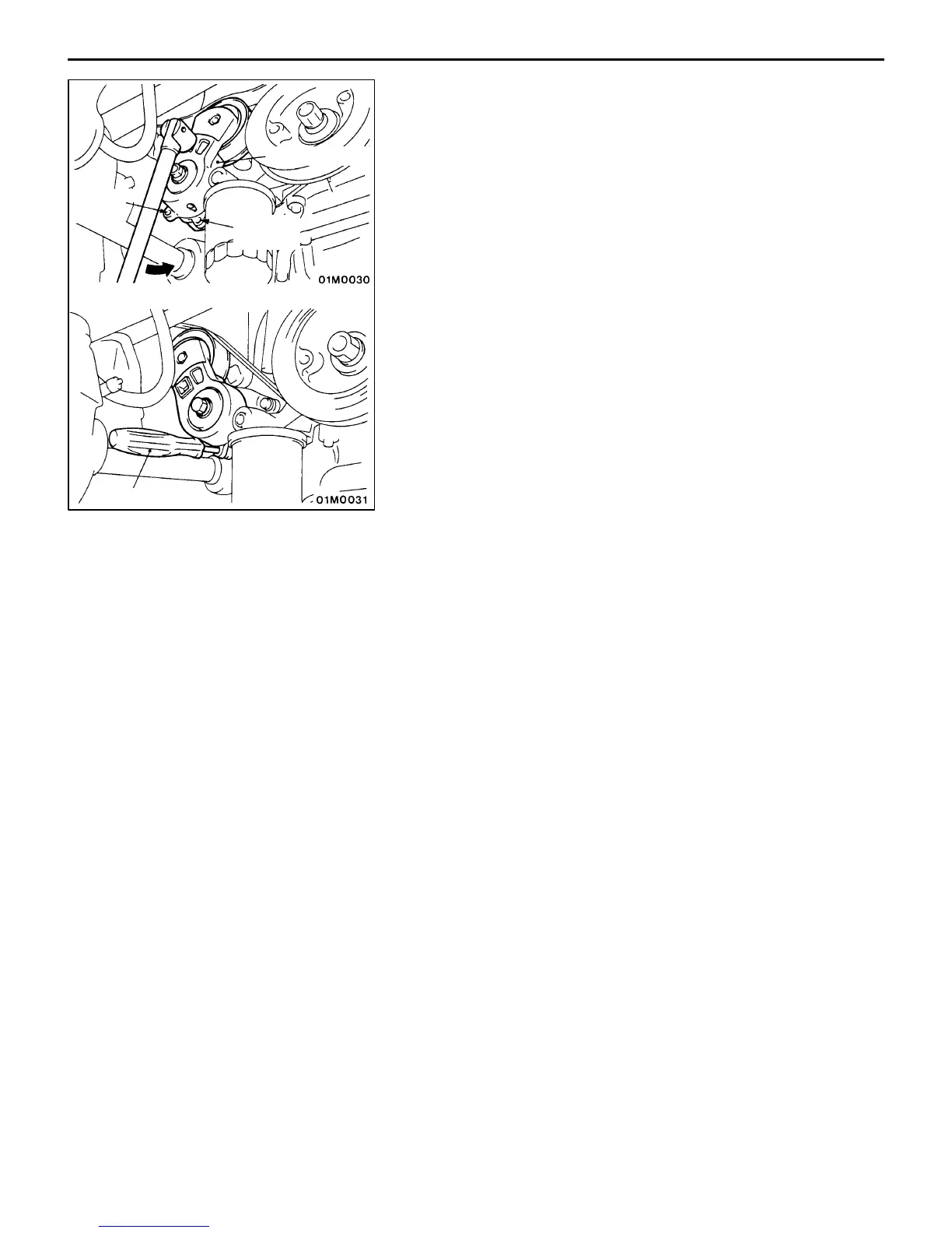 1. Align the hole in the auto-tensioner bracket with that in