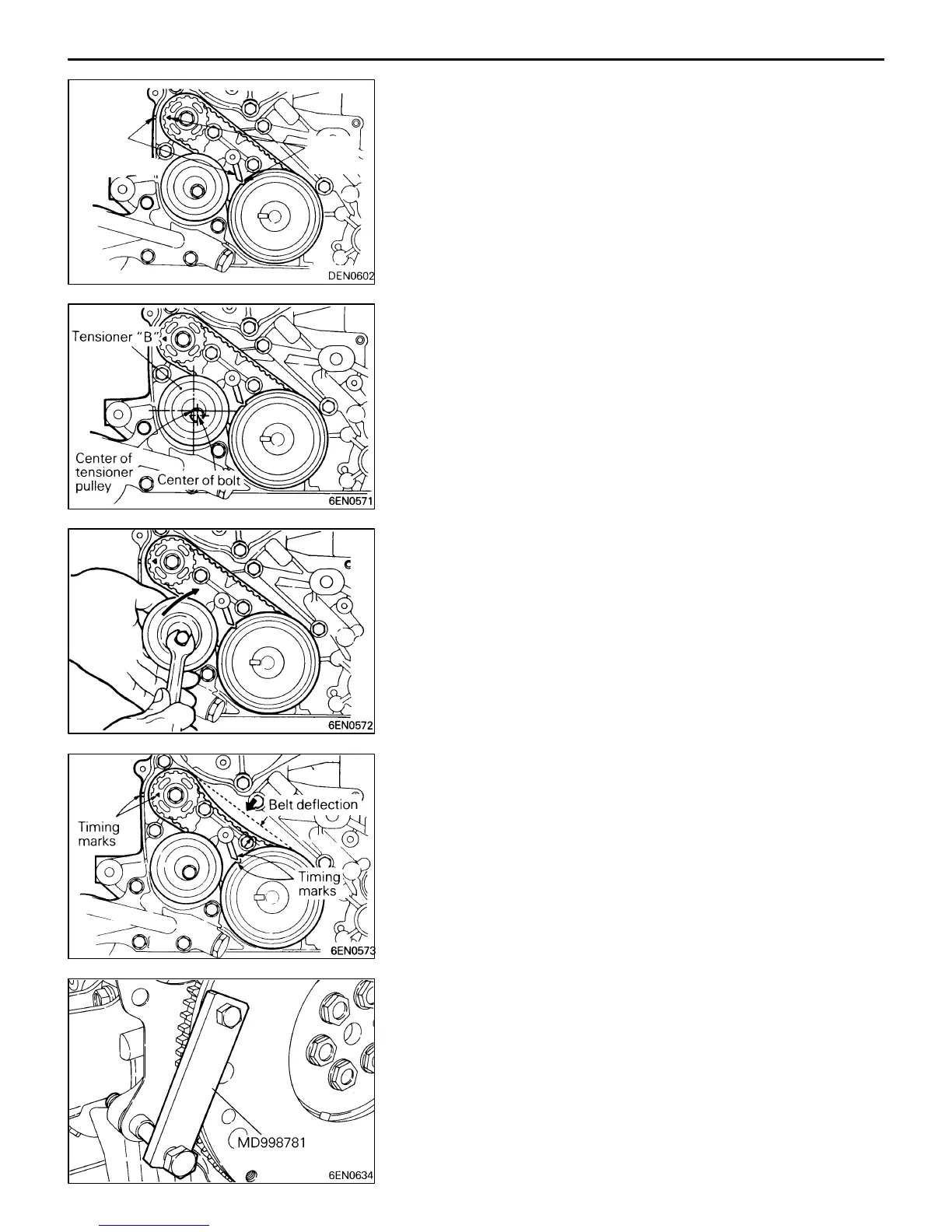 side of timing belt “B”. The bolt must deflect 5 – 7 mm.