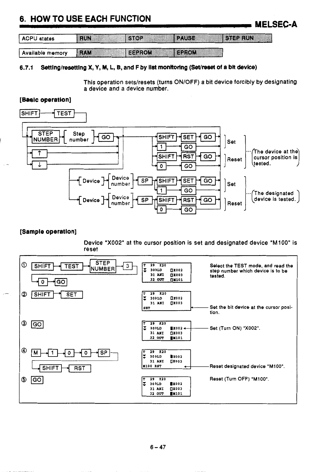 Set the bit device at the cursor posi-