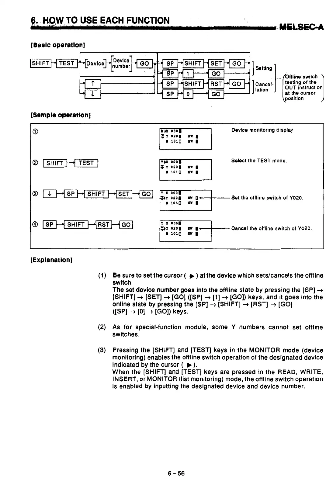 INSERT, or MONITOR (list monitoring) mode, the offline switch operation