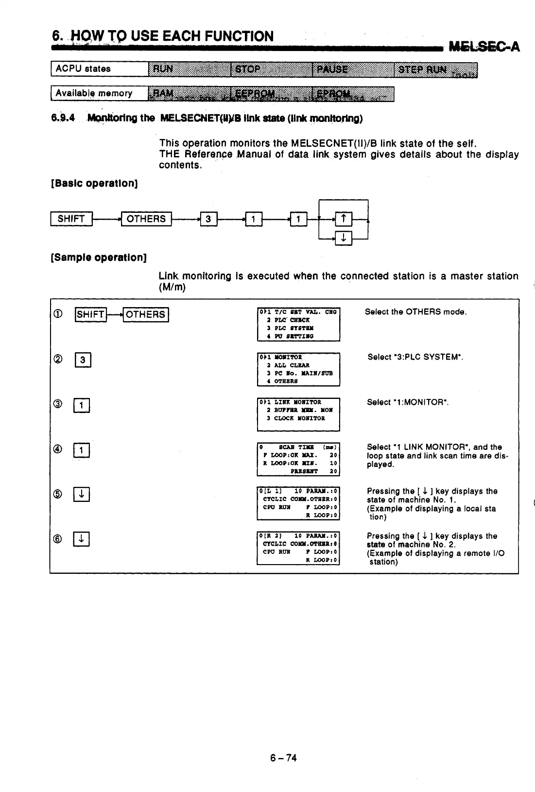 This operation monitors the MELSECNET(II)/B link state of the self.