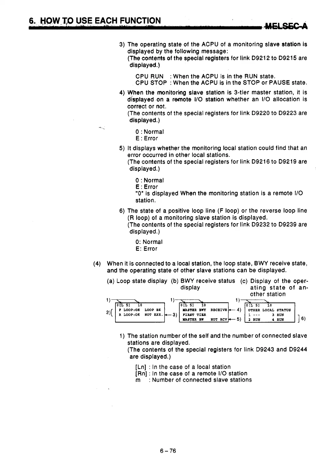 (a) Loop state display (b) BWY receive status (c) Display of the oper-