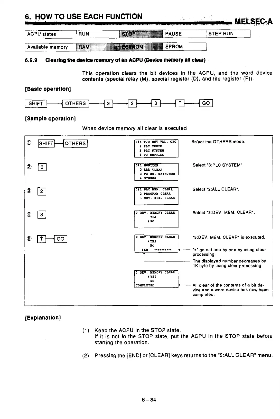 "3:DEV. MEM. CLEAR' is executed.