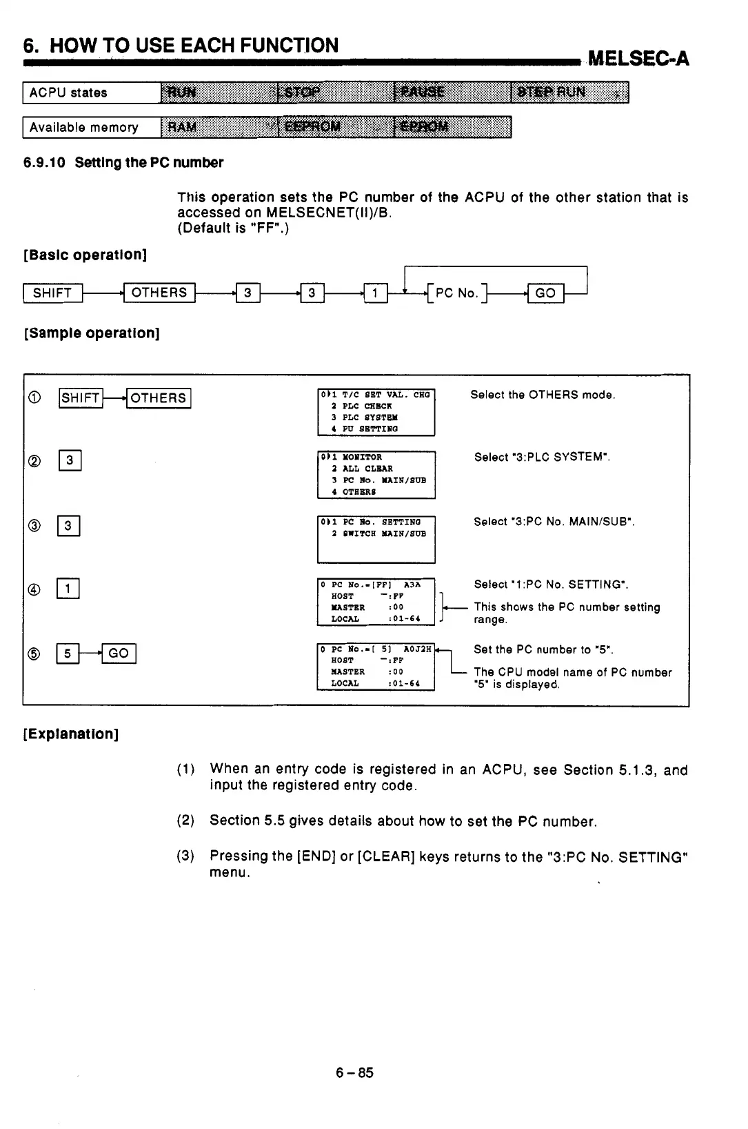 This operation sets the PC number