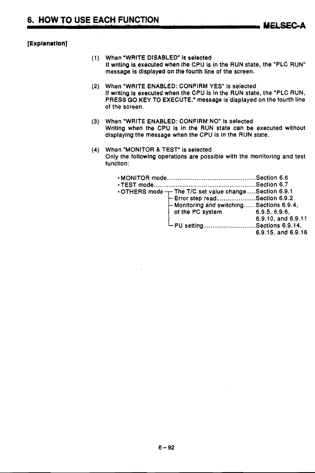 When "WRITE ENABLED: CONFIRM NO" is selected