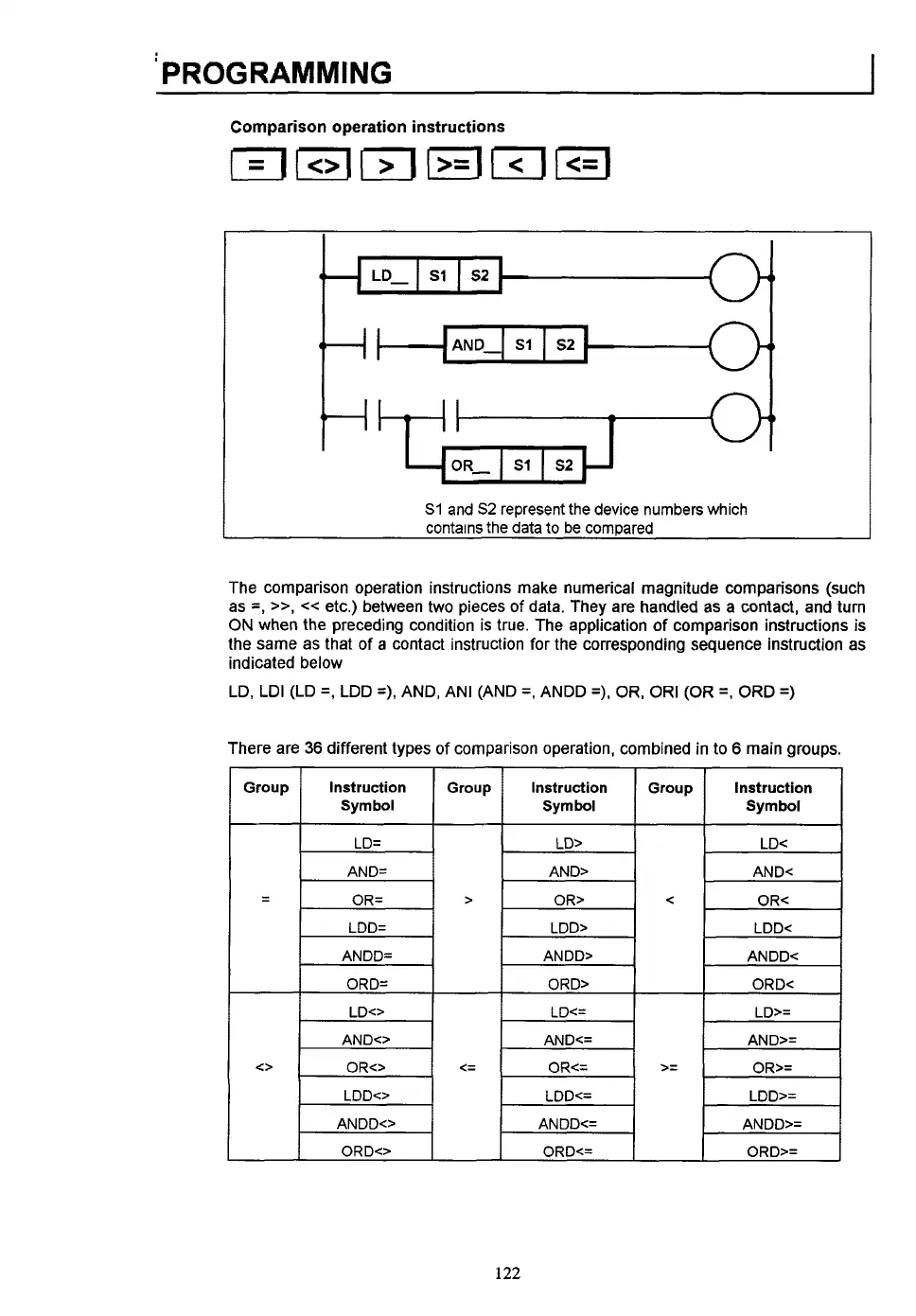 ON when the preceding condition is true. The application of comparison instructions is
