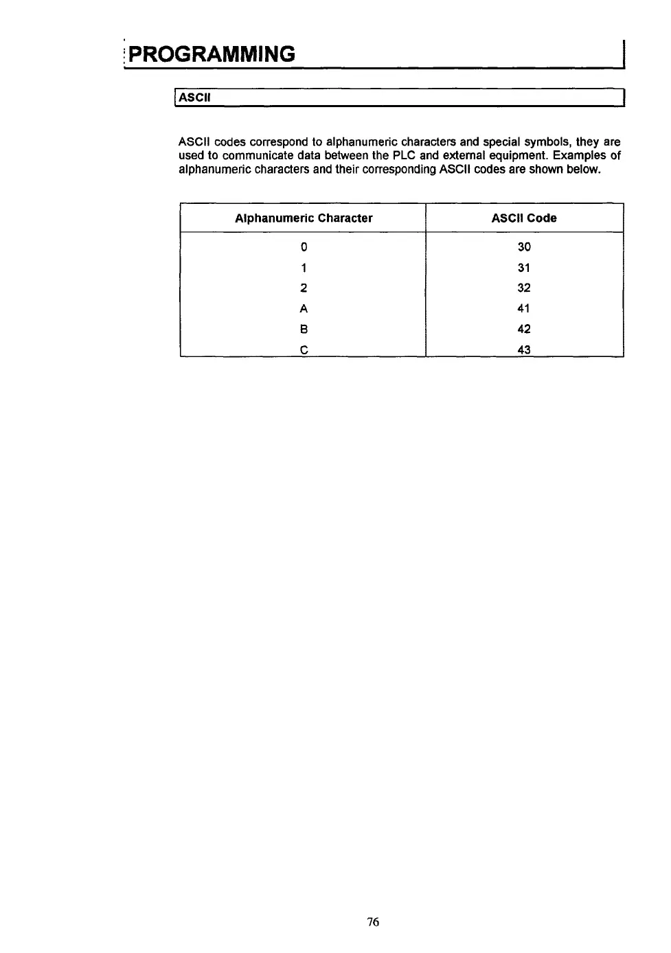 alphanumeric characters and their corresponding ASCII codes are shown below.