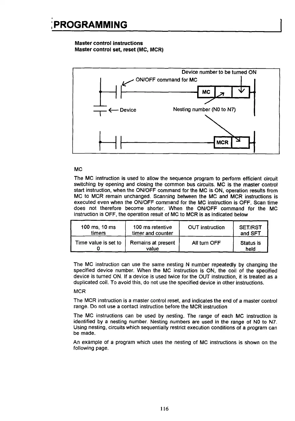 The MC instructions can be used by nesting. The range of each MC instruction is