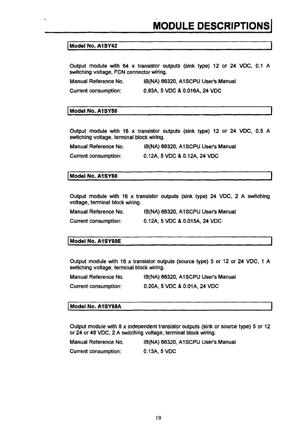 transistor outputs (sink type) 12 or 24 VDC, 0.1