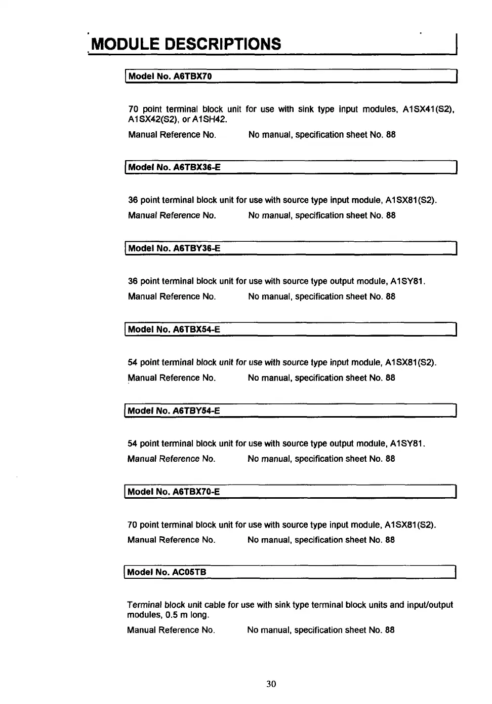 Terminal block unit cable for use with sink type terminal block units and input/output