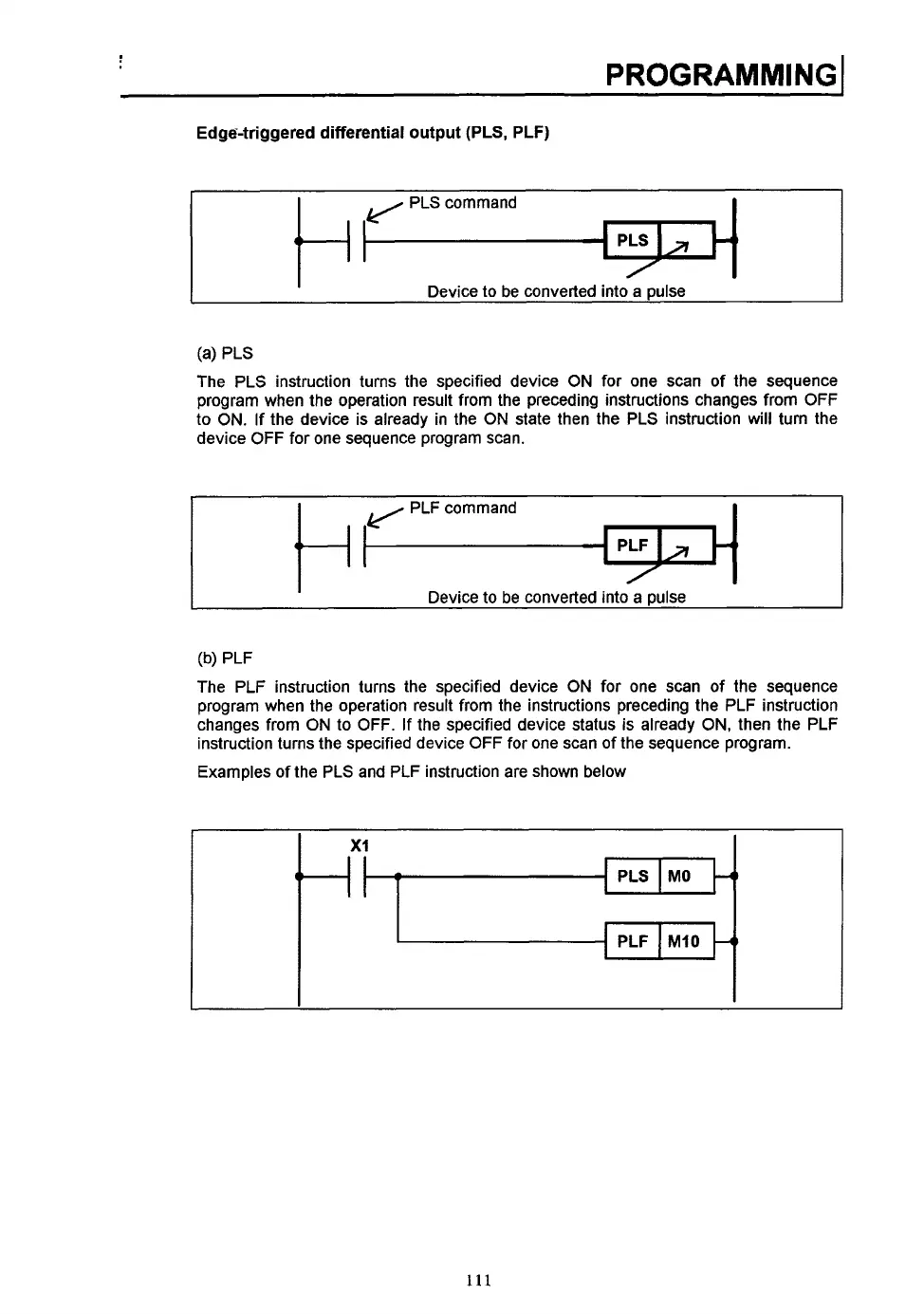 Examples of the PLS and PLF instruction are shown below