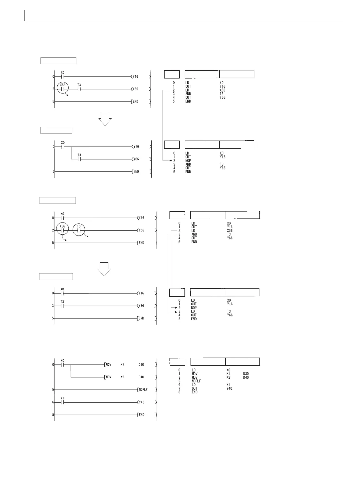 (2) Contact closed ... LD, LDI changed to NOP. (Note carefully that changing the LD and LDI instructions to NOP completely