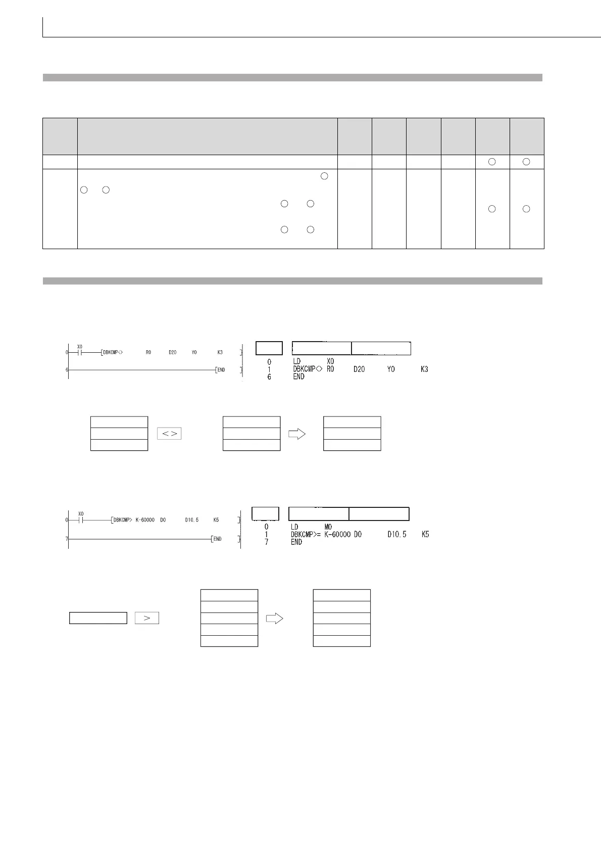 (1) The following program compares the value data stored at R0 to R5 with the value data stored at D20 to D25, and then