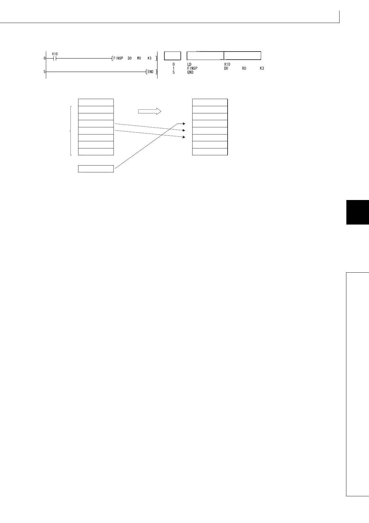 (2) The following program inserts the data at D0 into the third position at the table R0 to R7 when X10 is turned ON.