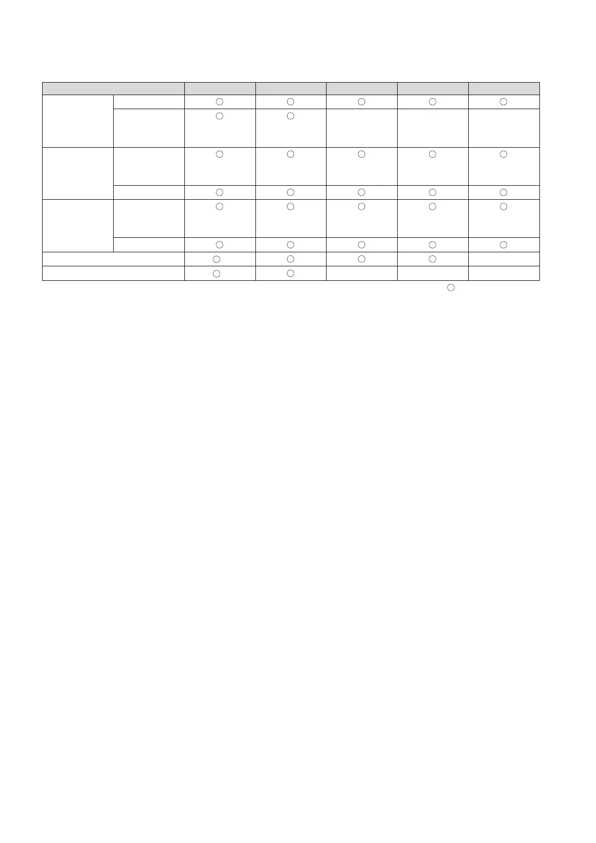 Symbols in table : Usable, –– : Unusable