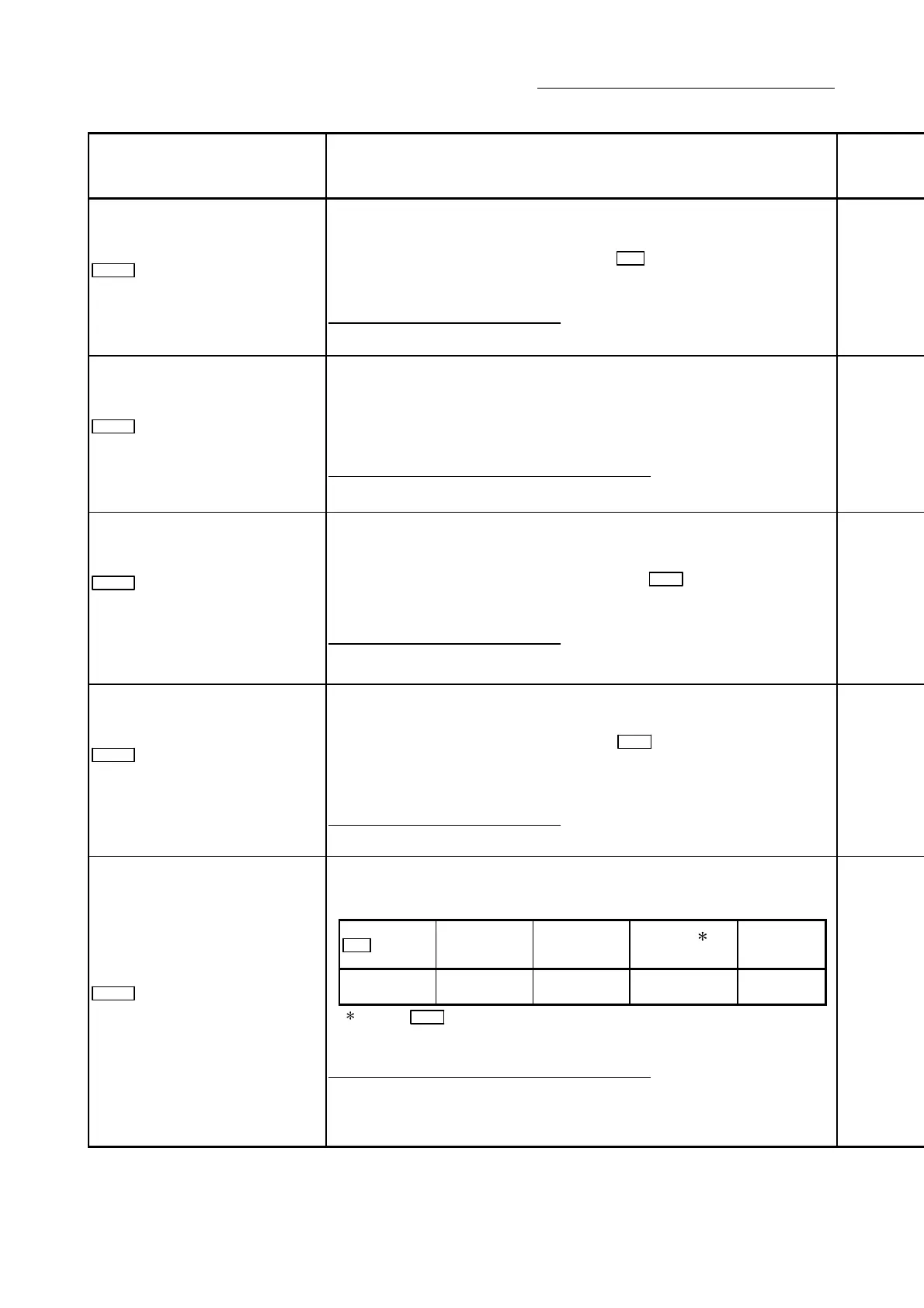 Setting item Setting details