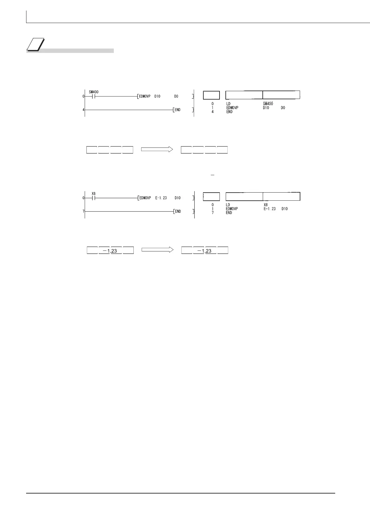 (2) The following program stores the real number 1.23 at D10 to D13 when X8 is ON.