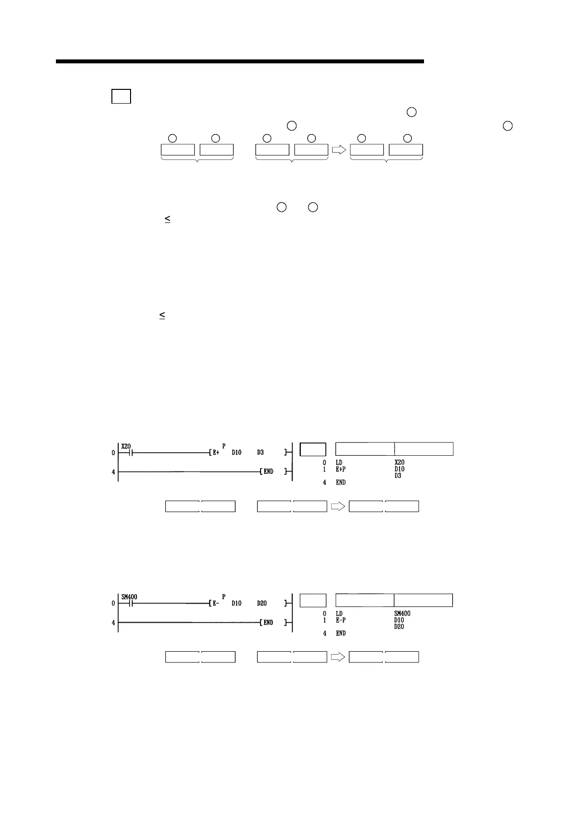 (2) The following program subtracts the floating decimal point type real number at D10 and D11