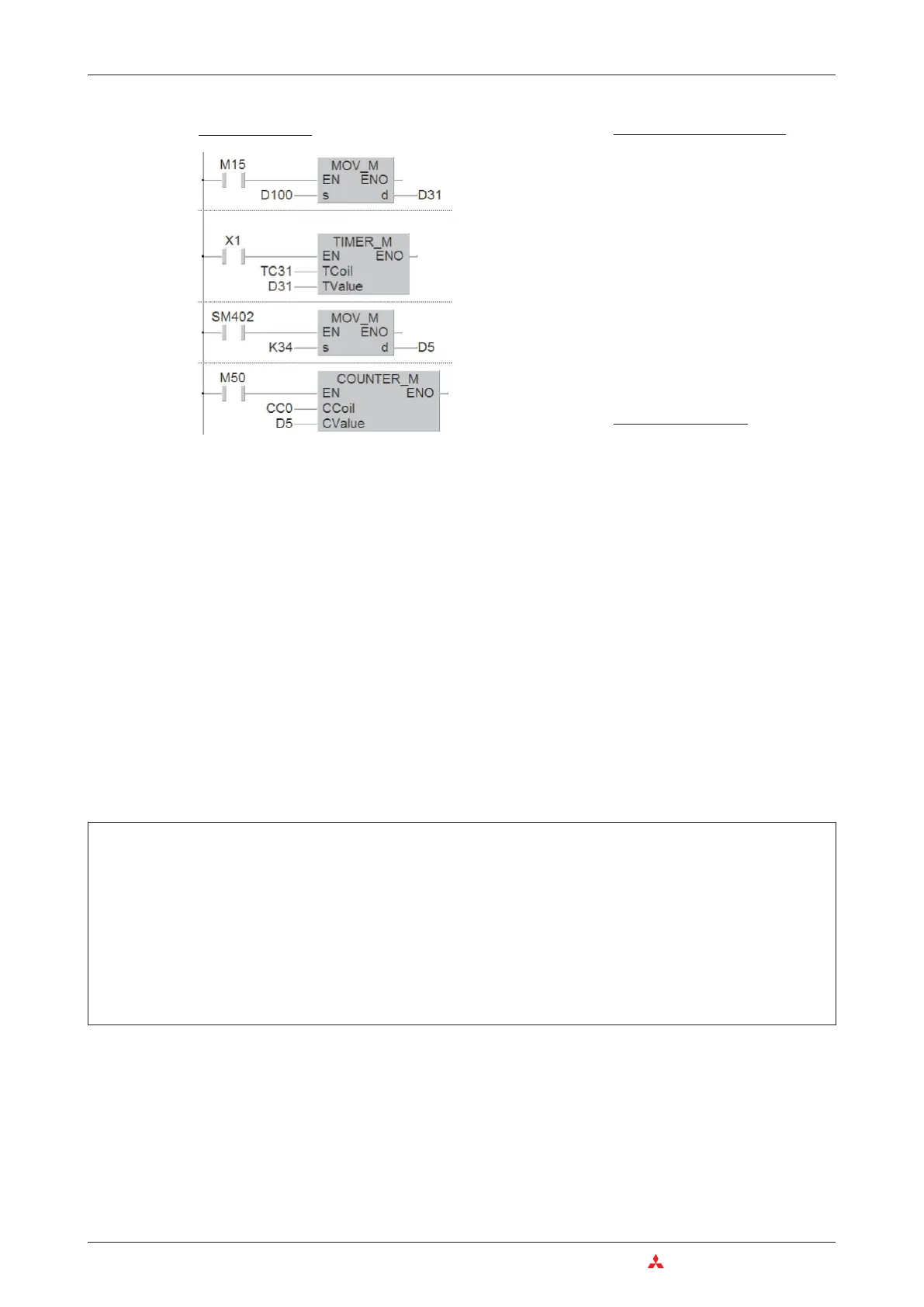 – When relay M15 is on the contents of data register D100 is copied to D31. This register