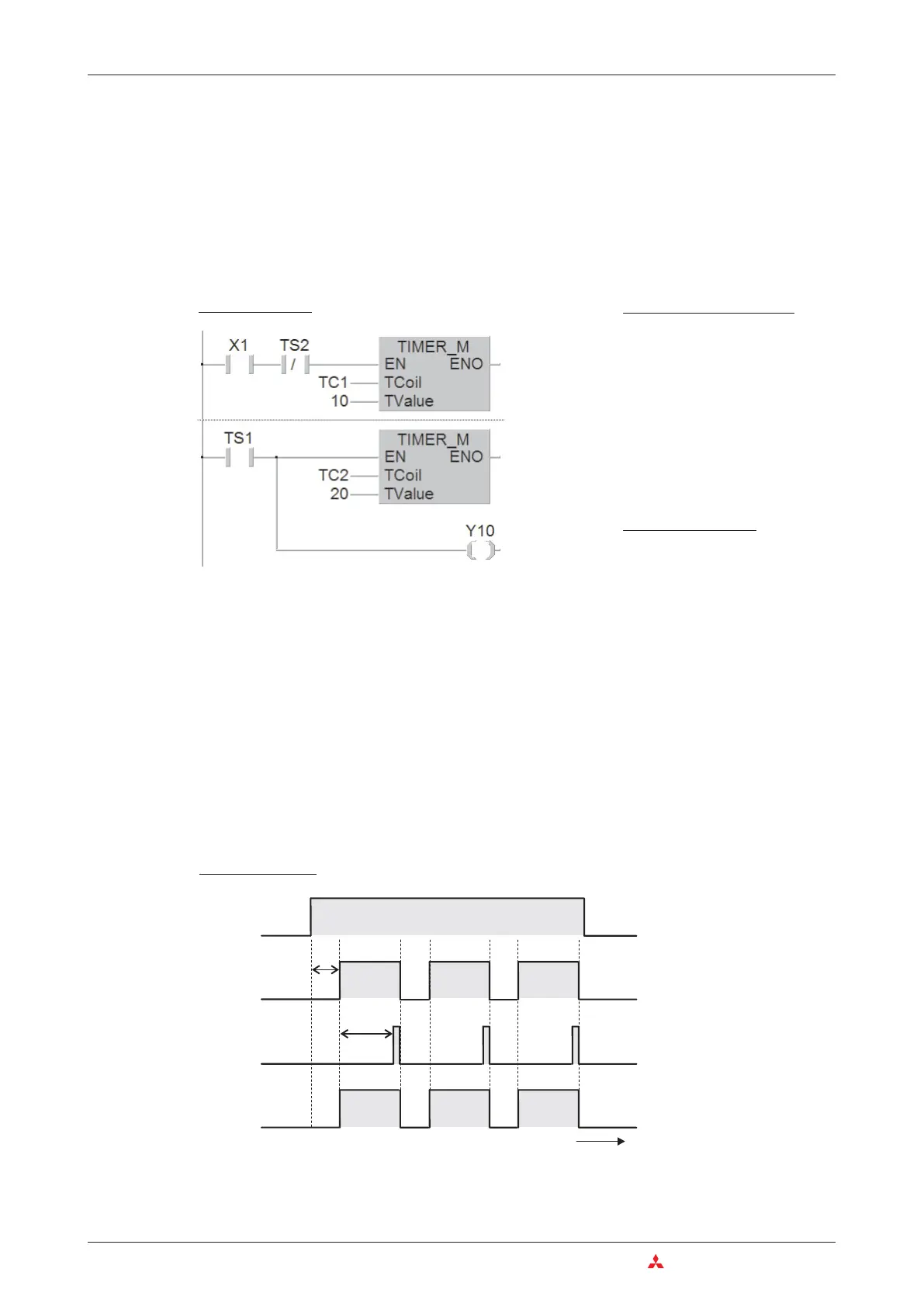 The output of timer T2 is only switched on for a single program cycle. This time is shown much