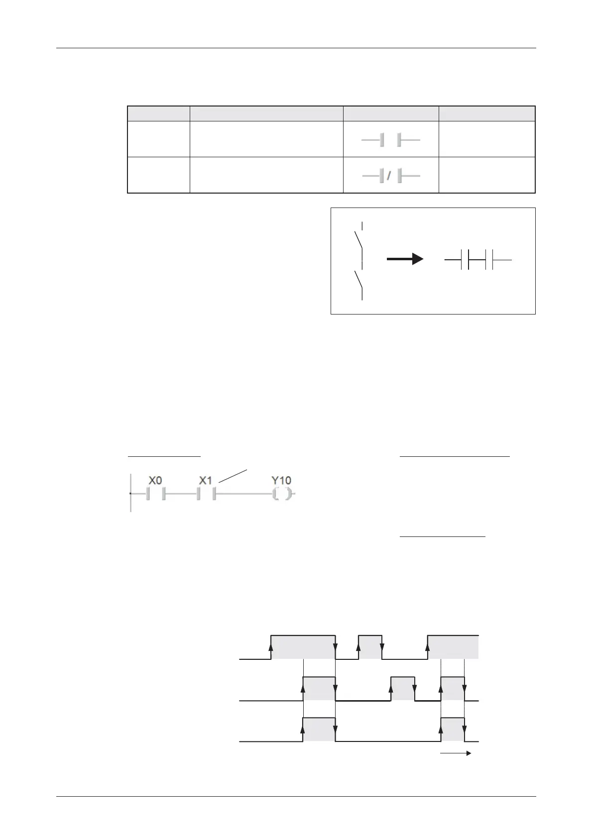 In the example output Y10 is only switched on when inputs X0 and X1 are both on: